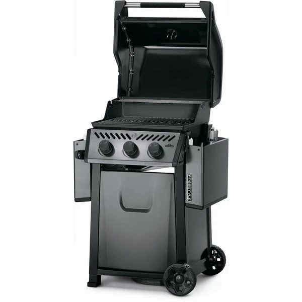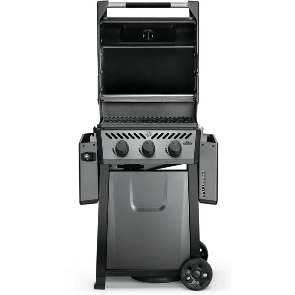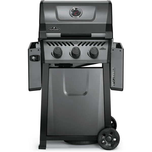 Der Napoleon Freestyle 365 Graphit ist ein kompakter Gasgrill mit erstklassigen Funktionen und unschlagbarem Preis-Leistungsverhältnis. Der Flammenstrahl des JETFIRE Zündsystems zündet die Hauptbrenner schnell, einfach und zuverlässig. Die Iconic Wave-Grillroste aus Gusseisen und die emaillierten Flammenschutzbleche ermöglichen eine gleichmäßige Hitze-Verteilung und ein perfektes Anbraten. Die Porzellanbeschichtung schützt sie dabei vor Rost. Der langlebige Feuerkasten aus Aluminiumguss reflektiert die Hitze des Grills und erzeugt so eine konvektive, backofenähnliche Umgebung und hervorragende Grillergebnisse. Die Temperatur der drei Edelstahlbrenner kann mit den ergonomischen Bedienknöpfen präzise gesteuert und über das integrierte Thermometer einfach kontrolliert werden. Die klassische Edelstahlblende und der Carbonfarbton verleihen dem leicht ablesbaren Thermometer einen stylischen Retrolook. Die schöne Graphit-Porzellanbeschichtung schützt den Deckel vor Abnutzung, Wettereinflüssen und Fingerabdrücken. Der Soft-Touch-Griff mit weicher Oberfläche ist wärmeabweisend und sorgt beim Öffnen und Schließen der Grillhaube für eine angenehme Griffigkeit. Auch die Reinigung des Gasgrills Freestyle 365 Graphit fällt anschließend dank der seitlich zu entnehmenden Fettauffangschale ganz leicht. Mit den beiden robusten Rollen kann der Grill leicht an jeden gewünschten Ort geschoben werden, und der geschlossene Unterschrank schützt die Gasflasche und den Wagen vor Umwelteinflüssen. Mit seinen einfach ausklappbarer Seitenablagen mit Aufhängern für Grillbesteck und einem Flaschenöffner ist der Freestyle für jede Gartenparty umfassend ausgestattet.Art.-Nr.: 1680019