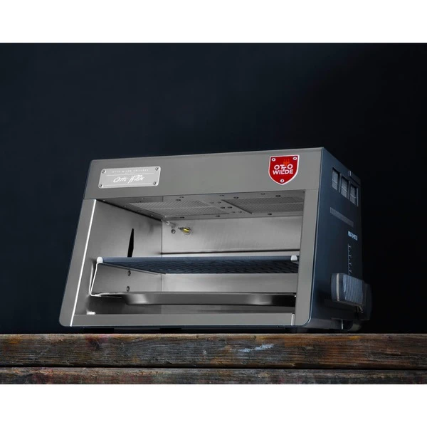 O.F.B. wurde von Otto Wilde Grillers entwickelt, weil eine knackige Kruste und saftiges Fleisch kein Zufall sind, sondern das Ergebnis extremer Grilltemperatur von bis zu 900°C. Bei herkömmlichen Grills kann das Steak eine flaue Kruste und einen trockenen Kern haben, wegen niedriger Grilltemperaturen und einer zu langen Grilldauer. Der O.F.B. Original verfügt über zwei Brenner, die in nur 3 Minuten bis zu 900°C erreichen, das verleiht den Steaks eine perfekte Kruste, während das Fleisch innen zart und saftig bleibt. Durch die hohen Temperaturen kommt es zur sogenannten Maillard-Reaktion. Sie ist für die schöne Kruste und den Grillgeschmack verantwortlich. Die Röststoffe verleihen dem Grillgut das typische „Brutzelaroma“ und intensivieren den Fleischgeschmack. Bei herkömmlichen Grills tropfen Fett und Fleischsäfte außerdem in die Hitzequelle, was Flammen und Fettbrände verursacht und die die gleichmäßige Hitzeverteilung stört. Verkohlte oder ungleichmäßig gegarte Speisen können die Folge sein. Durch die Oberhitze bei O.F.B. entsteht eine gleichmäßige Kruste, und das Fett tropft in die Auffangschale darunter. Die zwei Infrarot-Brenner sind stufenlos und individuell regelbar. Die offene Front ermöglicht nicht nur einen einfachen Zugang zum Grillgut, man kann auch die Steaks immer im Blick behalten. Wenn man mit 900 Grad grillt, muss das Einstellen der Rosthöhe zuverlässig funktionieren. Mit dem seitlichen Hebel ist die stufenlose Höhenverstellung des Rostes kinderleicht und durch den verstellbaren Widerstand auch besonders sanft und sicher. Der speziell für den Otto Wilde Grillers O.F.B. entwickelte Gusseisen-Grillrost speichert die Hitze optimal, erfordert nur minimalen Pflegeaufwand und ist groß genug, um selbst die größten Porterhouse-Steaks zu grillen. Ob Picknick oder Camping-Urlaub, O.F.B. lässt sich durch seine Kompaktheit außerdem überall hin mitnehmen.Art.-Nr.: 1629746