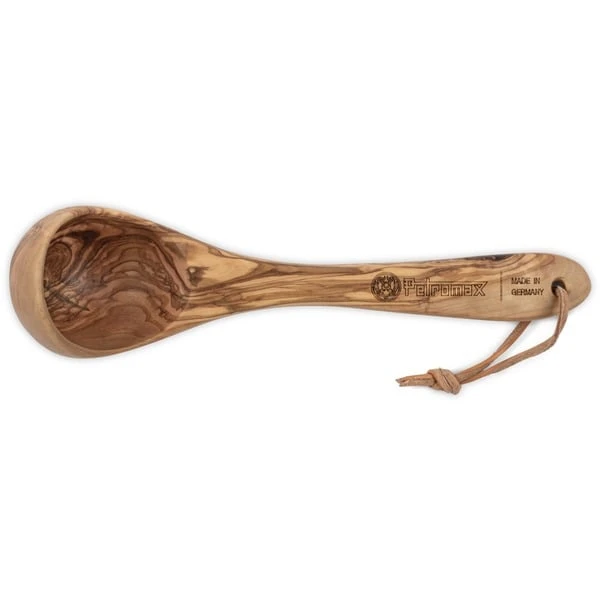 Die Petromax Kelle aus Olivenholz eignet sich als Servierbesteck für Suppen und Eintöpfe, zum Umfüllen oder Probieren des Essens am Lagerfeuer. Auch zum Abmessen ist sie nutzbar. Die Olivenholz-Kelle mit 60ml Fassungsvermögen ist lange haltbar dank Öl-Wachs-Finish und natürlich lebensmittelecht. Mit dem praktischen Lederriemen kann sie am Gürtel oder Rucksack befestigt werden. Art.-Nr.: 1862192